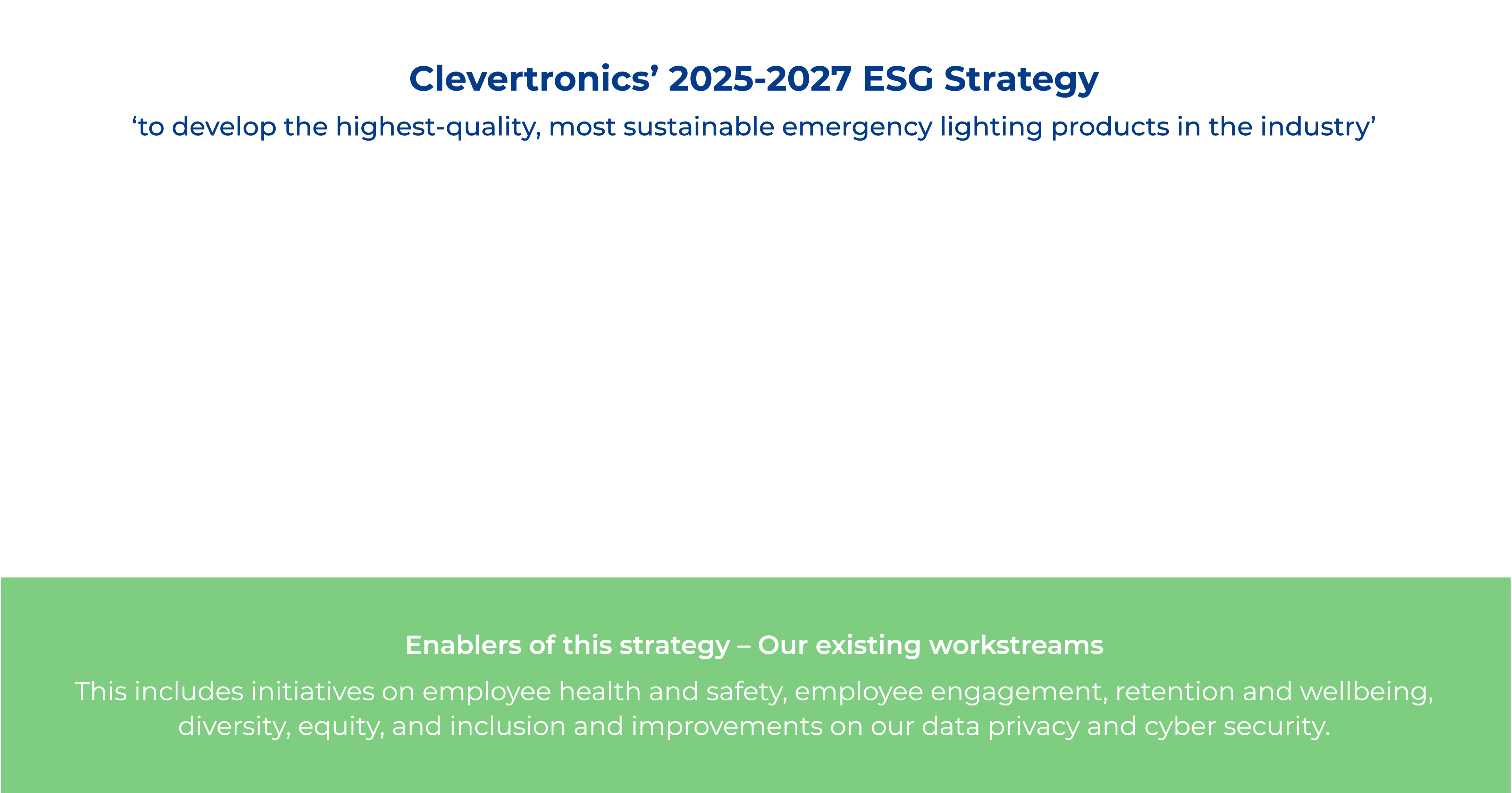 - Ensure robust governance - Our strategy will help us achieve our vision with clear, ambitious targets for products, operations, governance, and policies and processes needed to enforce them. We’ll establish precise data collection and reporting systems to track our ESG progress and ensure we report in line with all mandatory requirements, including developing a Climate Disclosure Roadmap a Modern Slavery Statement.
