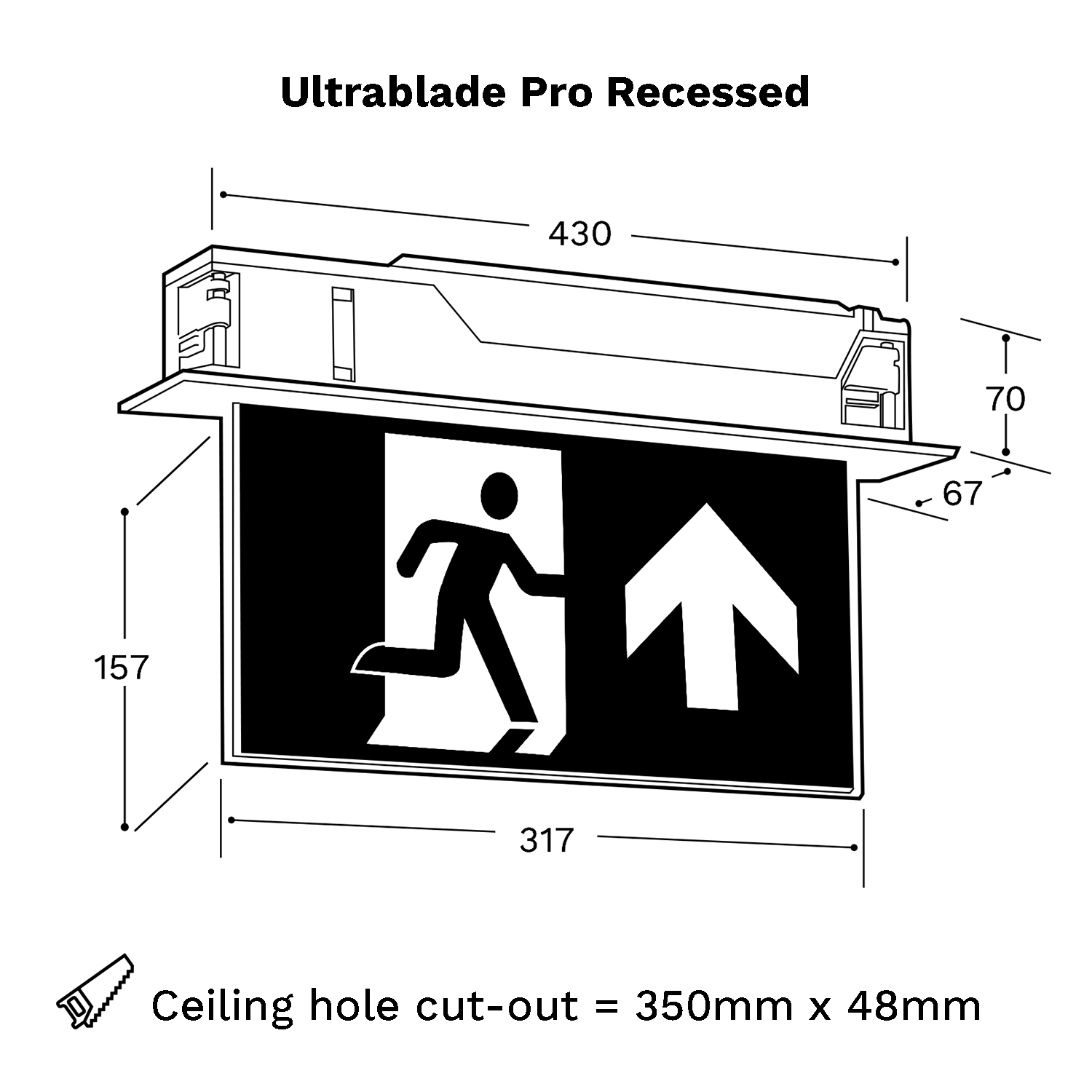 The Ultrablade Pro Exit Light is designed to satisfy architectural requirements in recessed ceiling applications where a higher level of sophistication is required.